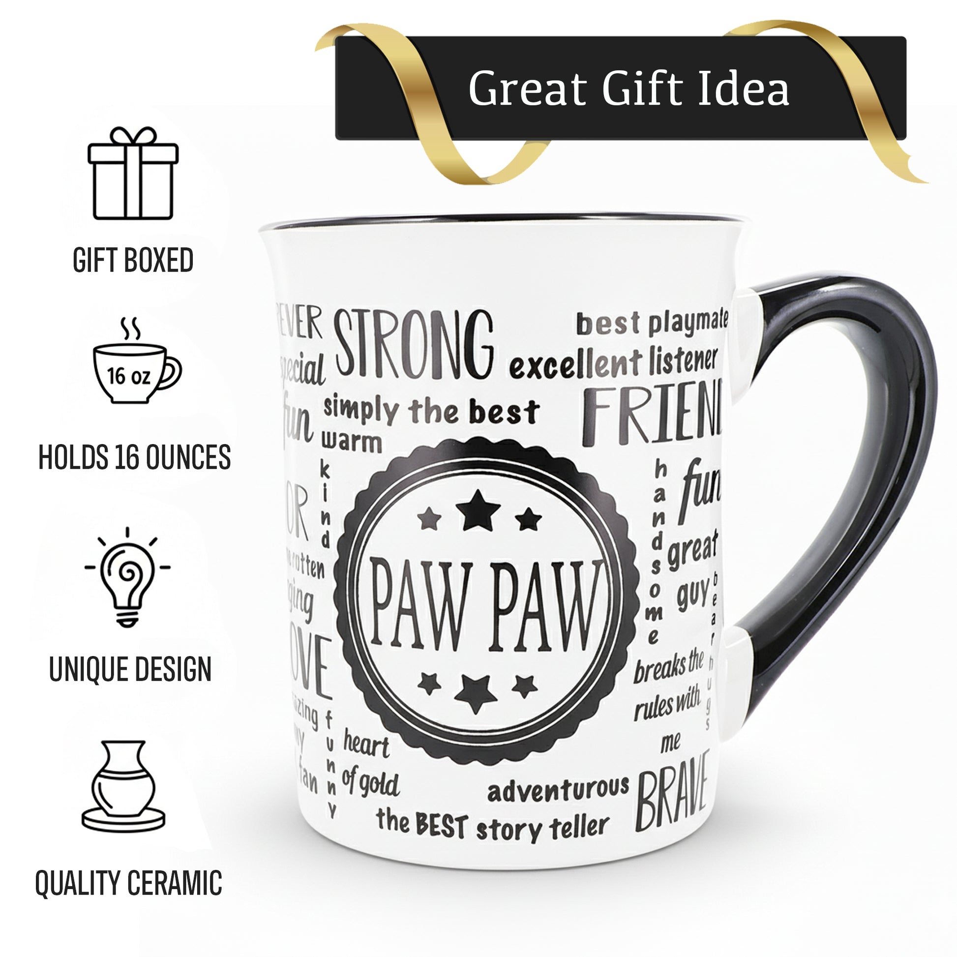 If you need a gift for men that stands out, our Paw Paw mugs are a great option for unique gifts, Pawpaw gifts, Papaw gifts, Paw Paw gifts, and gifts dads. It's also a fun addition to office decor & house decor, offering a personal touch at work or home. Grandpa will cherish the sweet sentiment gifted with this wonderful Paw coffee mug or Grandpa mug.