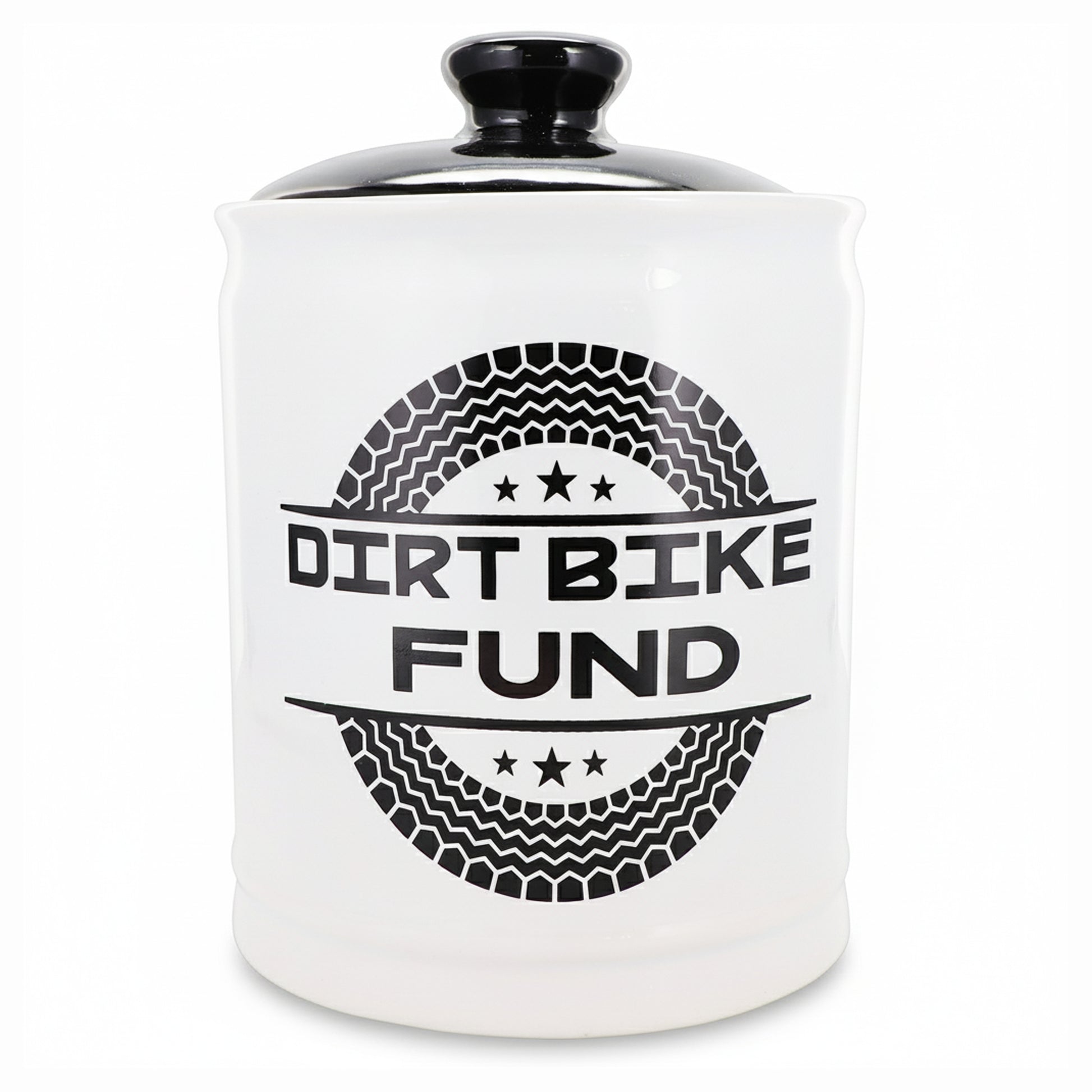 Cottage Creek Dirt Bike Fund Ceramic Jar with Lid - Fun Piggy Bank & Candy Jar, Perfect Gifts for Men, Dad, & Boyfriend - Cool Desk Decor & Man Cave Accessories for Motorcycle, Motocross, & ATV Riders