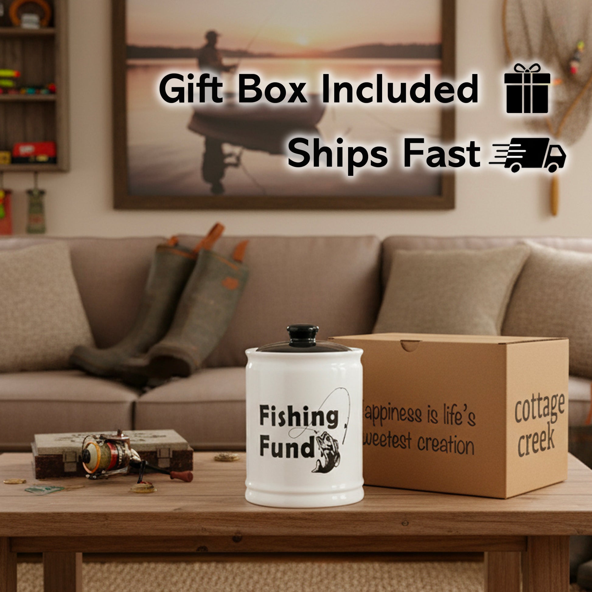 Cottage Creek Ceramic Fish Piggy Bank for Adults and Kids - Decorative Money Jar, Fishing Fund & Coin Bank, Gifts for Men, Dad, Grandpa, Boyfriend, Boys, and Fisherman | Unique Home Decor