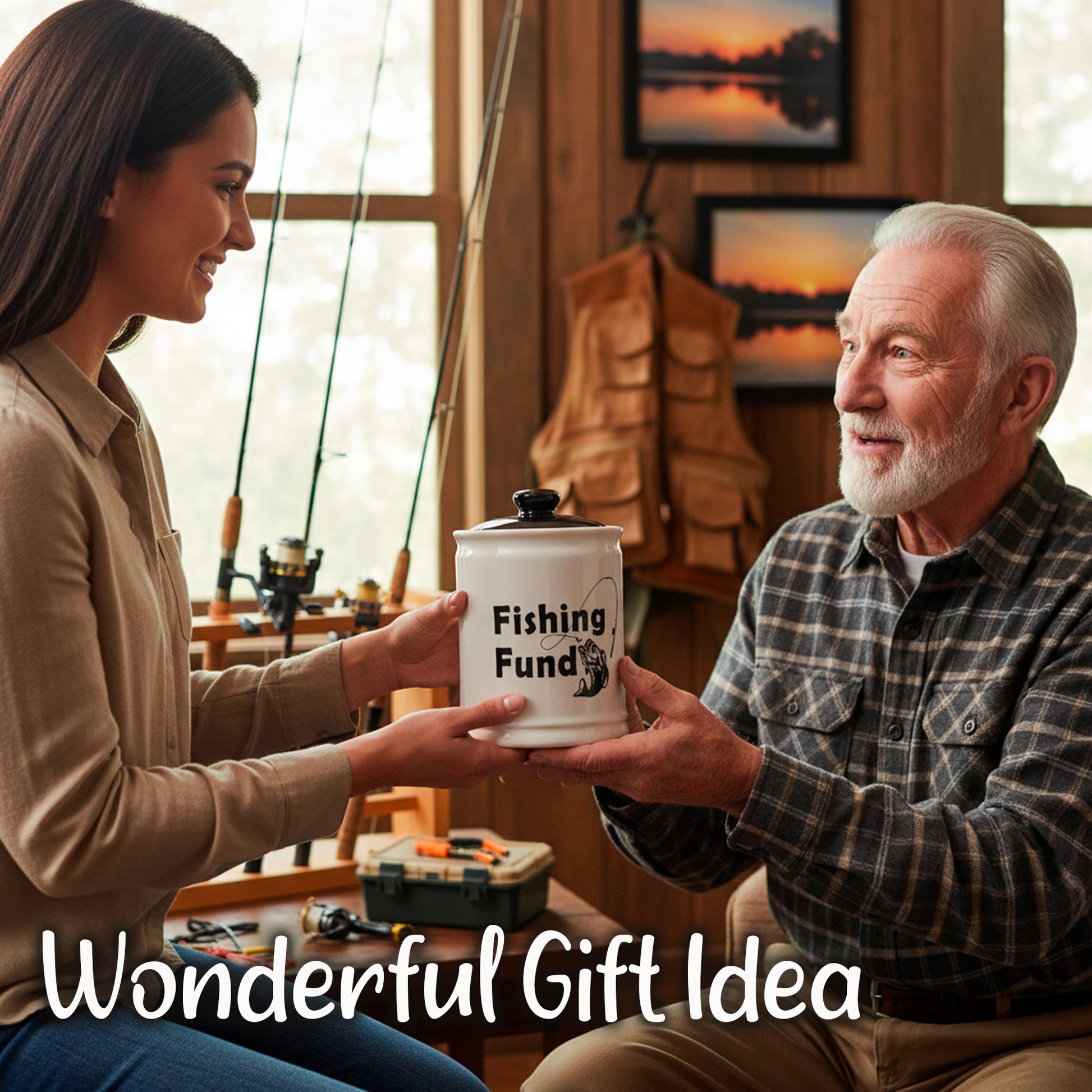 More than a simple fishing fund jar coin jar; it's a versatile and fun way to save for your passions. Use it as a fishing gear fund, hunting gear fund, bass boat fund or adventure fund to save money for your next big trip. The removable ceramic lid makes it easy to access your coins and cash whenever you're ready to make a purchase. It's an excellent conversation starter for any man cave, office desk, or living room, adding a fun and functional touch to your space. Fishing jar coin bank for men doubles as a handy storage container for small office supplies and as a candy jar to hold small candies and treats.