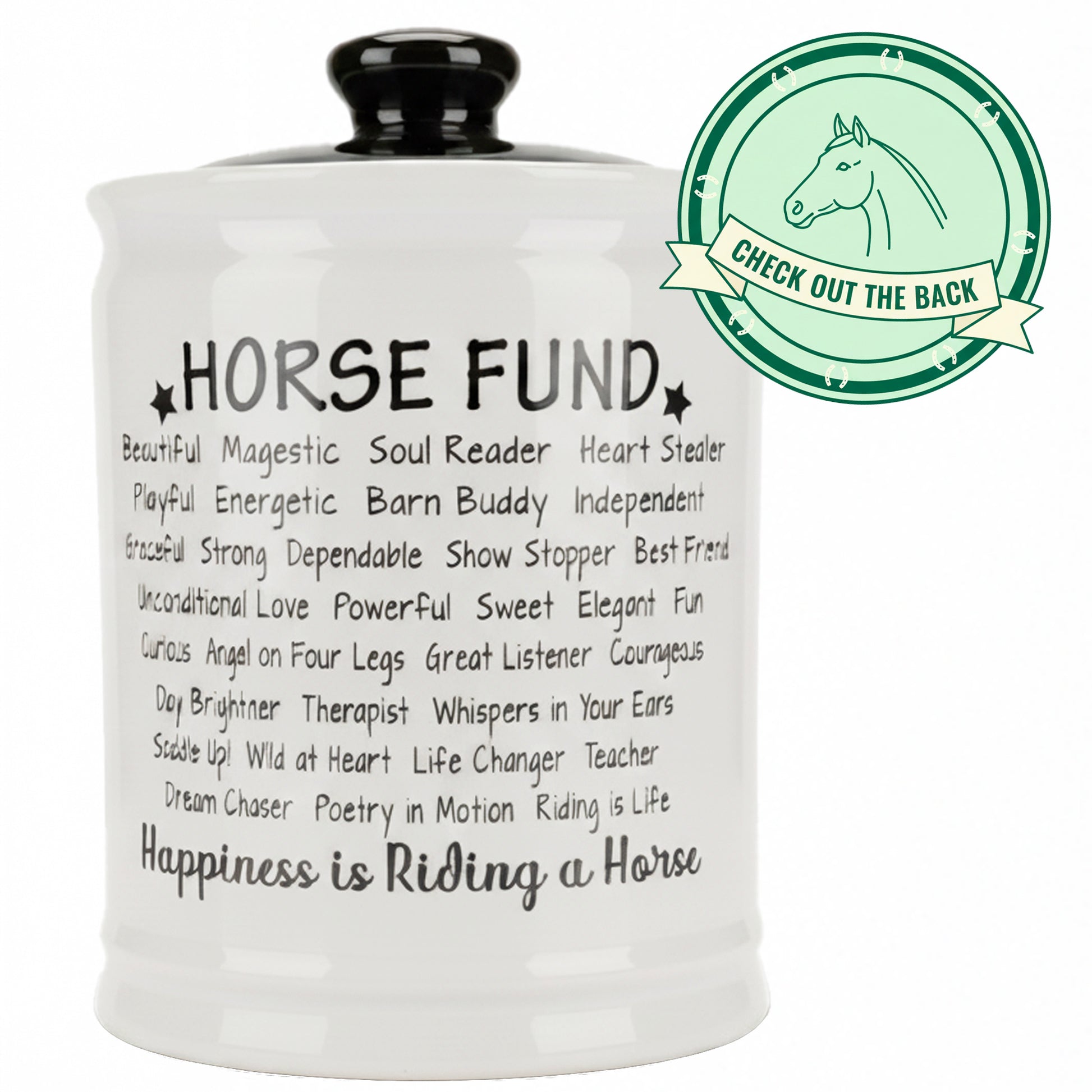 Ignite the passion of the horse lover in your life with the Cottage Creek Horse Fund Piggy Bank! More than just a large piggy bank horse jar; this money bank fund jar is a dedicated engine for their equestrian dreams.