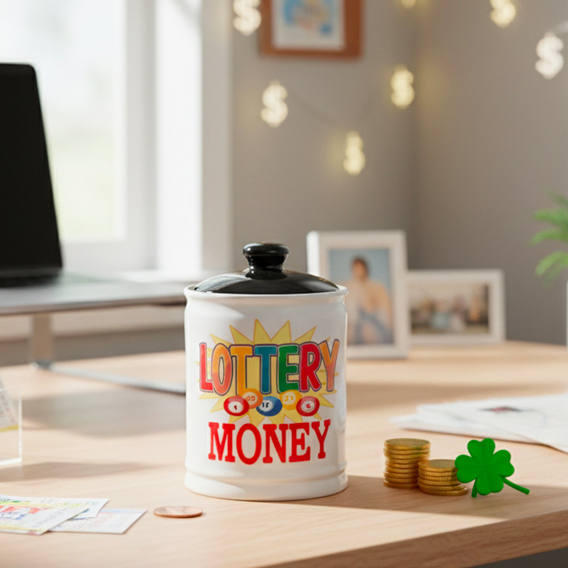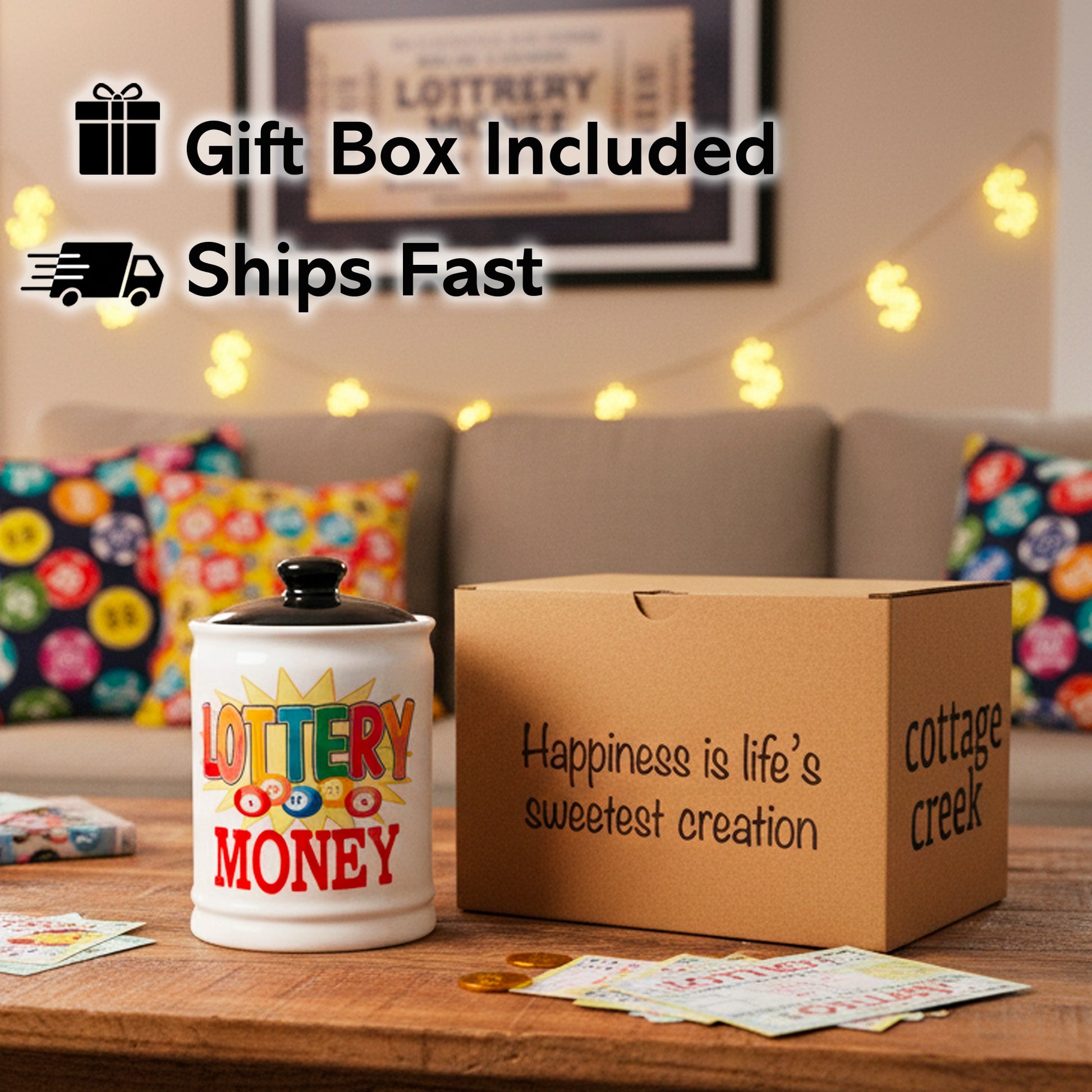 Cottage Creek Jars | Lottery Money Piggy Bank for Adults Storage Jar | Lottery Ticket Holder Ceramic Jar for Office & Home Decor | Lotto Gifts & Christmas Gifts for Women, Men, Grandparents, Friends