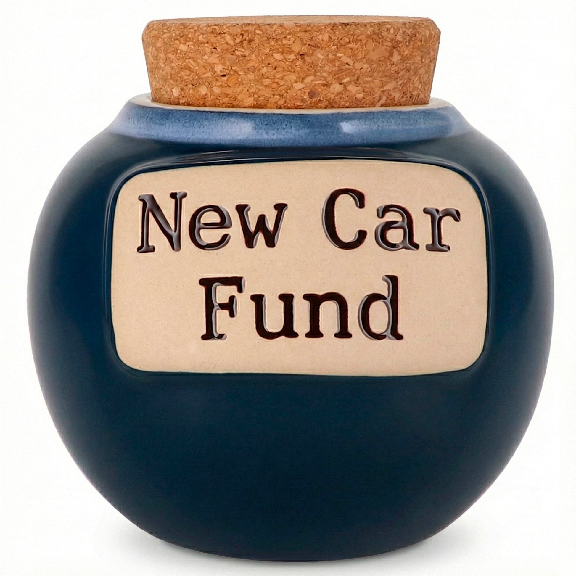 Crafted from high-quality, durable stoneware, this hefty bank jar is built to last and features a removable cork lid for easy access. It effectively solves the problem of "financial leakage" by giving every single penny, nickel, and quarter a designated parking spot. You will be shocked at how fast those loose coins from your couch cushions and laundry pockets add up to a full tank of gas, new car parts, or a substantial down payment. Whether you are an aspiring teen driver counting down the days until you get your license, a gearhead saving for a restoration project car or racing funds, or simply tired of driving a "beater" that makes funny noises, this new car fund fund bank is the ultimate accountability partner to keep you on track.