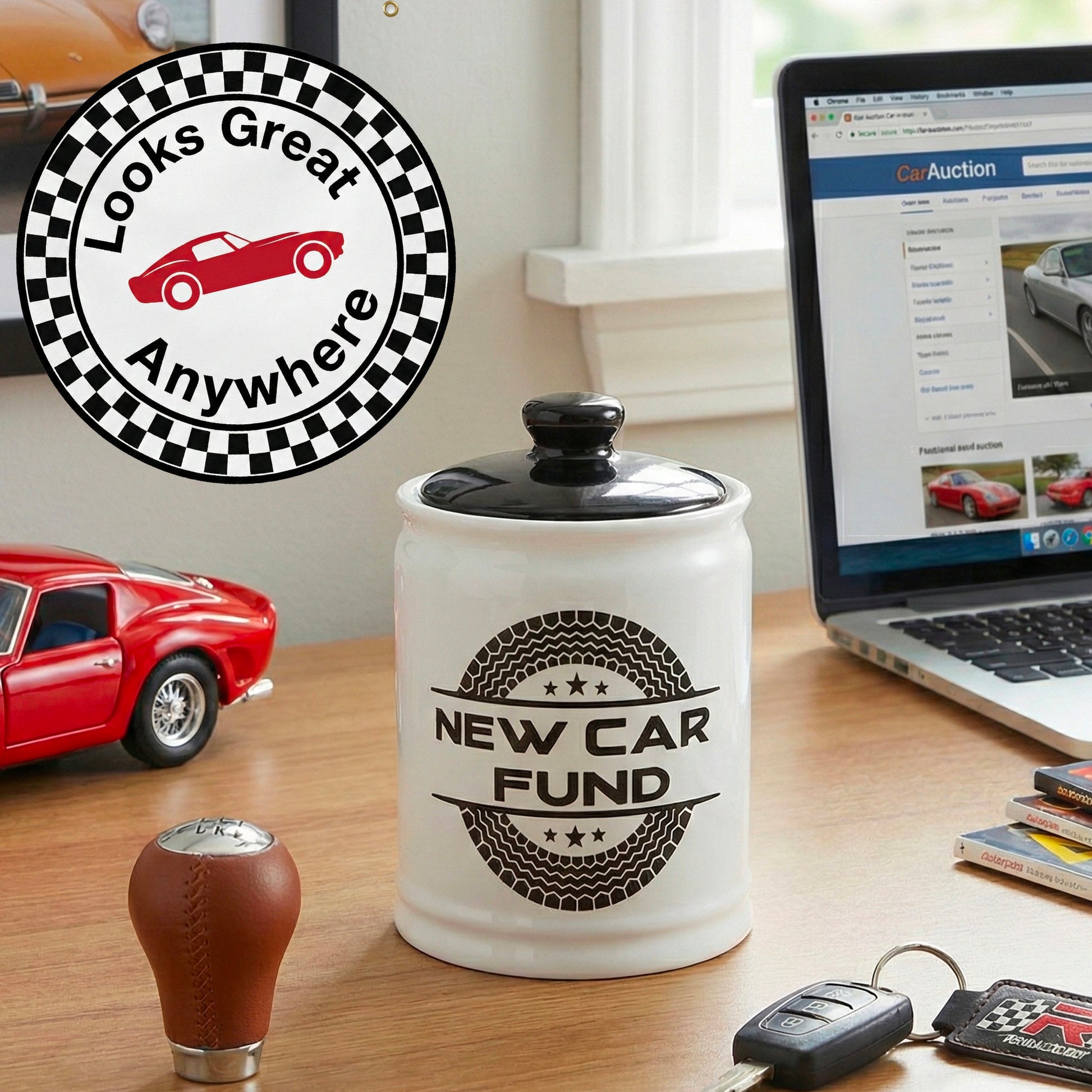 Cottage Creek Jars | New Car Fund Piggy Bank | Car Accessories Ceramic Jar for Office & Home Decor | Stocking Stuffers & Christmas Gifts for Men, Teens, Women, Friends