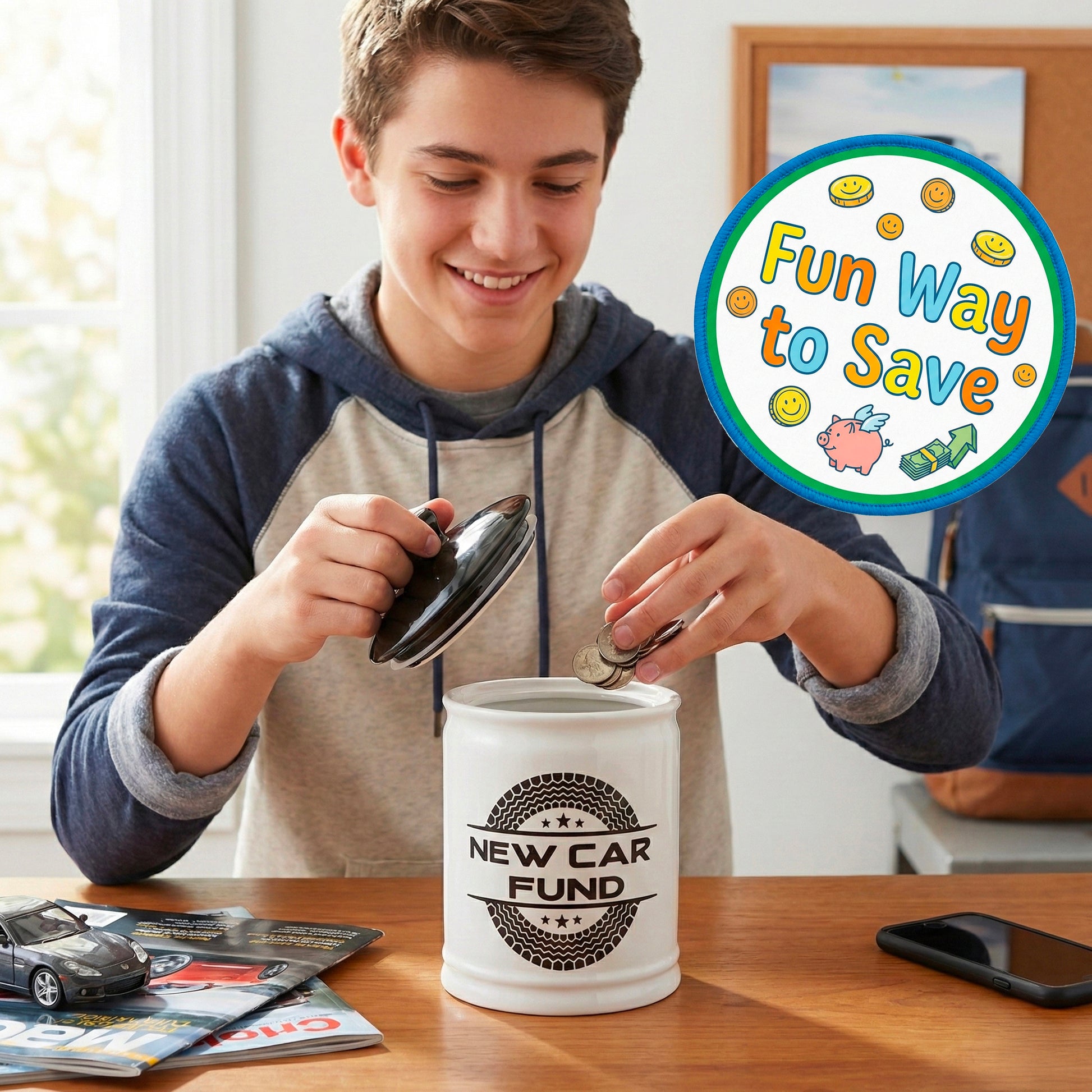 Crafted from high-quality, durable stoneware, this hefty bank jar is built to last and features a removable black glazed lid with a sturdy knob for easy access. It effectively solves the problem of "financial leakage" by giving every single penny, nickel, and quarter a designated parking spot. You will be shocked at how fast those loose coins from your couch cushions and laundry pockets add up to a full tank of gas, new car parts, or a substantial down payment. Whether you are an aspiring teen driver counting down the days until you get your license, a gearhead saving for a restoration project car or racing funds, or simply tired of driving a "beater" that makes funny noises, this new car fund fund bank is the ultimate accountability partner to keep you on track.
