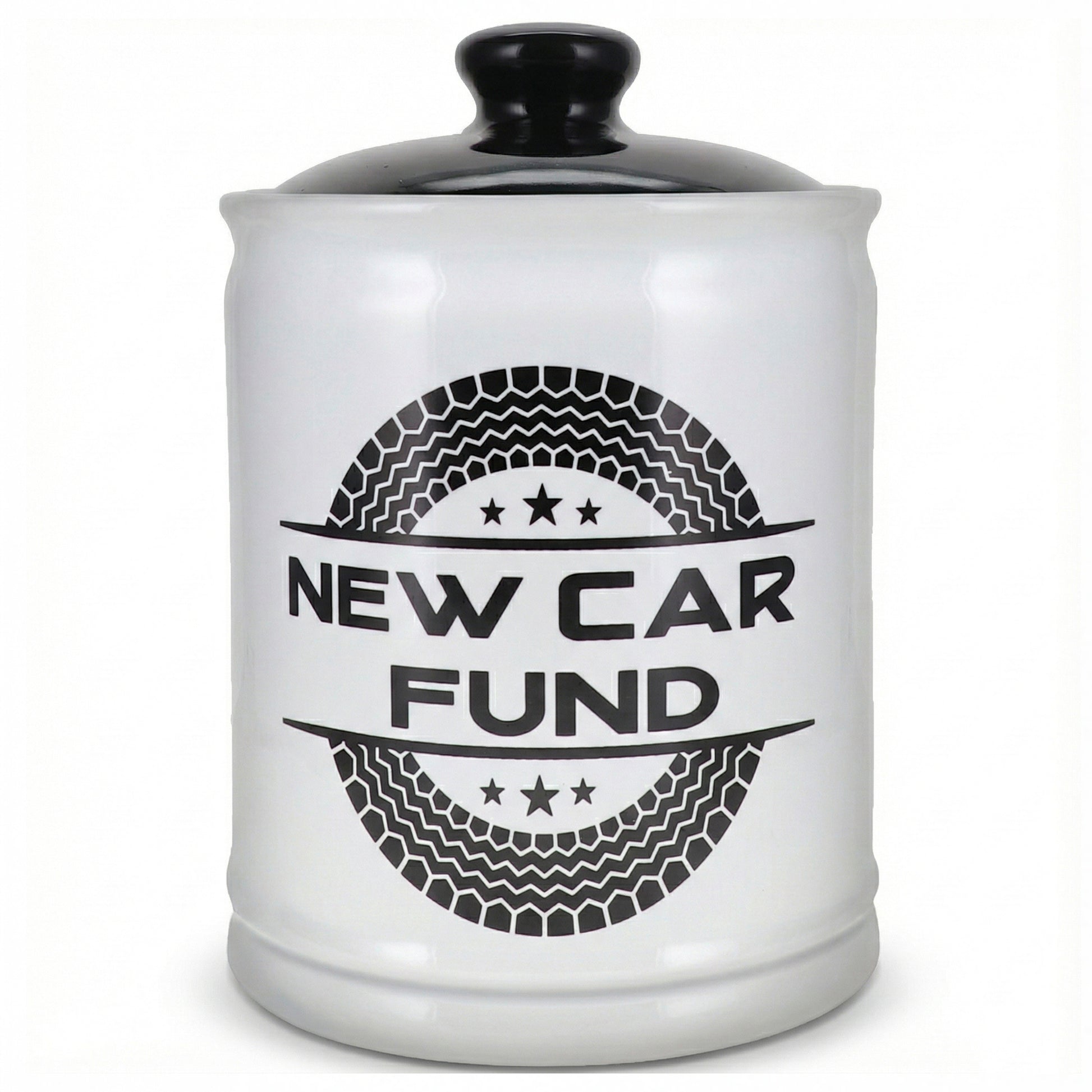 Start saving today with the Cottage Creek New Car Fund Jar. This new car accessories jar bank isn't just a standard cars piggy bank; it is your daily co-pilot for saving money for an exciting journey toward the open road. Designed to be a centerpiece, this sleek money saving box features a high-gloss finish and a modern black-and-white aesthetic that looks incredible in any home office, kitchen, garage, or man cave.