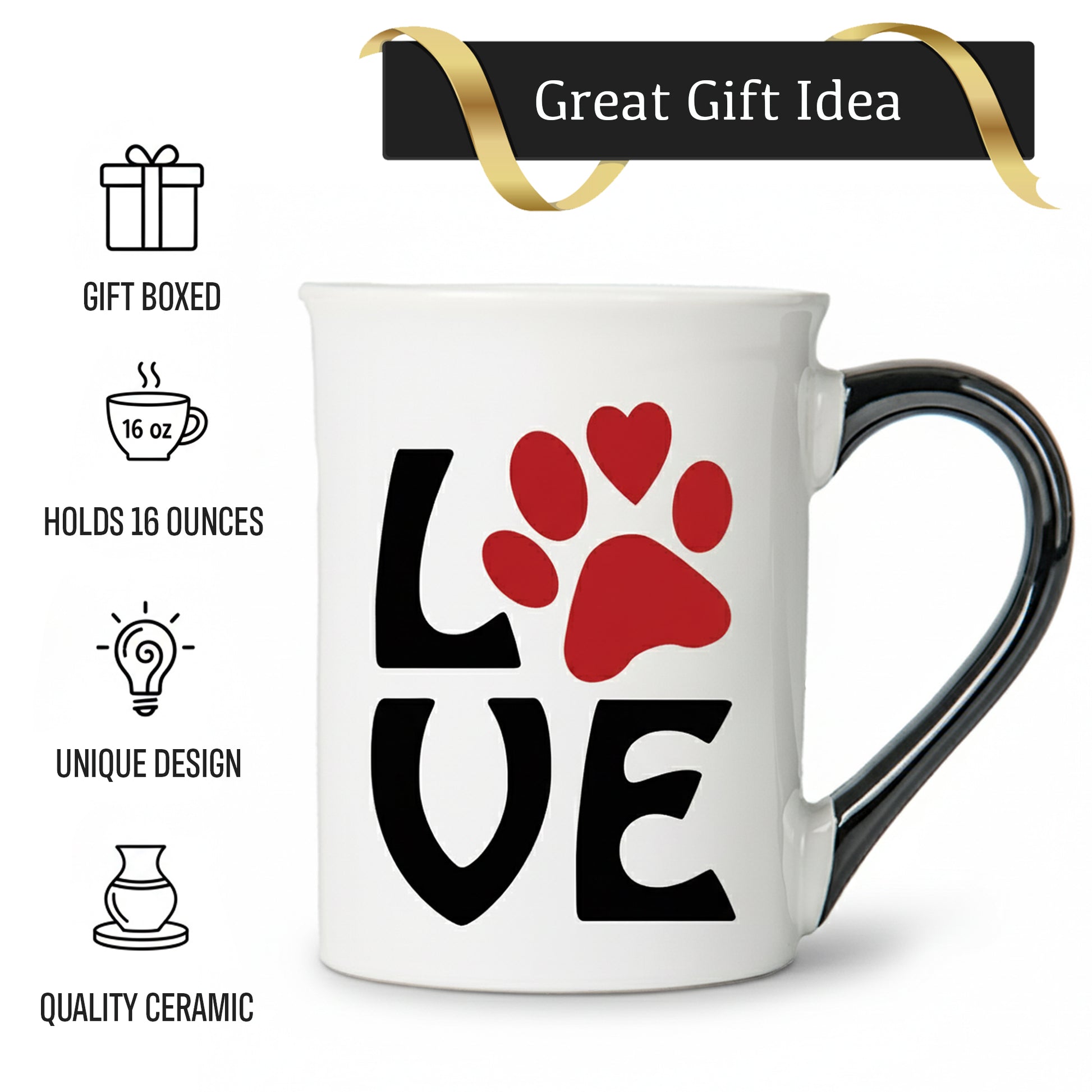 Cottage Creek's Love Paw Print coffee mug is a ceramic mug, dog mom mug and dog dad mug dog lovers cannot live without! This dog coffee mug is intricately designed with playful dog-themed graphics making it an ideal dog lover gifts or dog lovers gifts for women.